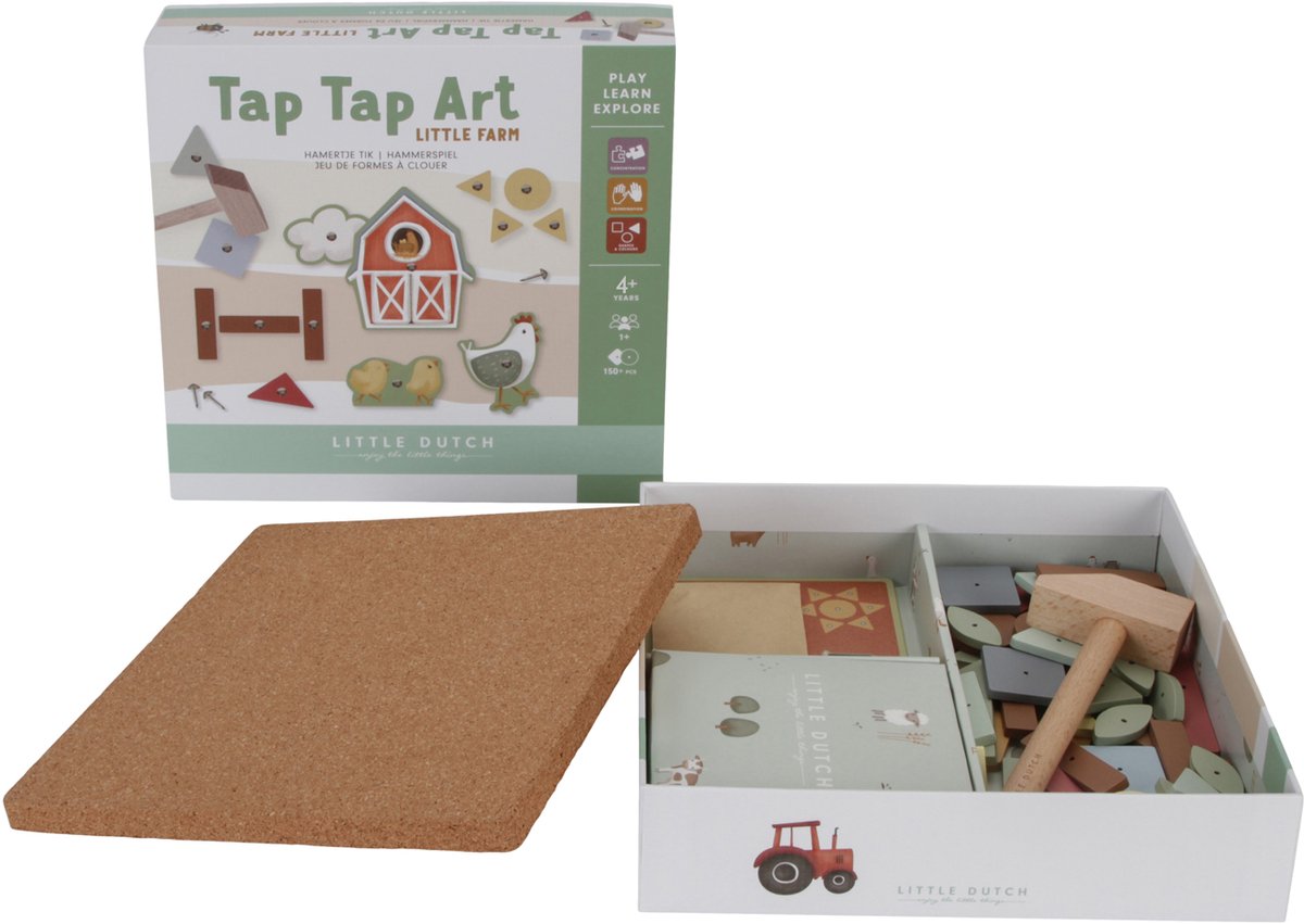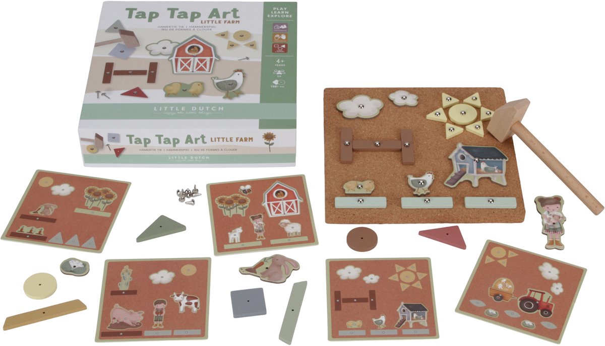 Met dit hamertje-tikspel uit de Little Farm collectie kunnen kinderen vanaf 3 jaar er vrolijk op los timmeren. De set bevat een combinatie van houten geometrische vormen en geïllustreerde figuren van hoogwaardig karton. Kinderen kunnen hun verbeelding de vrije loop laten en de mooiste fantasietaferelen creëren. WAARSCHUWING: Niet geschikt voor kinderen jonger dan 4 jaar. Kleine onderdelen. Verstikkingsgevaar. Dit speelgoed bevat functionele scherpe punten; Verwondingsgevaar.