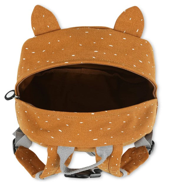 Met dit schattige rugzakje is je kindje helemaal klaar voor elke leuke activiteit of eerste schooldag! De rugzak heeft verstelbare en gewatteerde schouderriemen en aan de bovenkant een handvat om gemakkelijk te kunnen ophangen. De gesp op de borst zorgt ervoor dat de schouderriemen niet van de schouders glijden. Er is ook een klein zakje aan de voorkant voorzien en de ritsen van het grote compartiment en het voorste zakje zijn voorzien van een groter trekkertje zodat de kindjes ze zelf eenvoudig kunnen openen en sluiten. Om te vermijden dat je kindje z'n rugzakje kwijtspeelt, hebben we langs de binnenkant een naam label voorzien.