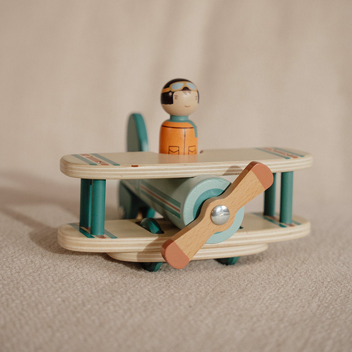 Klaar voor vertrek! Jij bent de piloot in commando, dus start je motor, geef de propeller een draai, en laten we op avontuur gaan. Dit speelvliegtuig is ontworpen voor interactief en fantasierijk spelen. De soepel rollende wielen laten jouw kleintje moeiteloos over de vloer glijden om nieuwe gebieden te verkennen. Het piloten poppetje past bij de andere speelsets van het poppenhuis, zoals de caravan en de schoolbus. Laat de verbeelding van je kind tot nieuwe hoogten stijgen met dit leuke houten speelvliegtuigje.